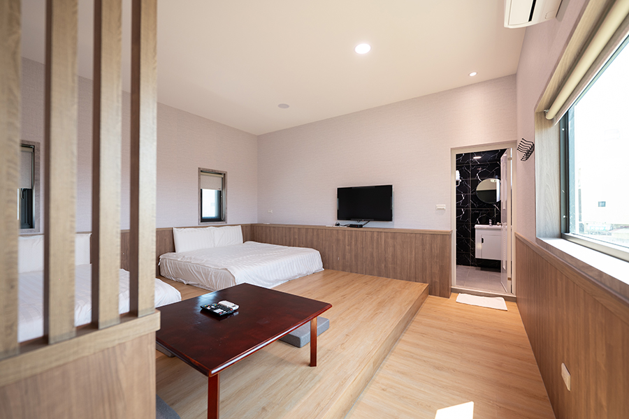 B區包棟內容:雙人套房一間+四人套房兩間+獨立中庭。可包棟可分住。